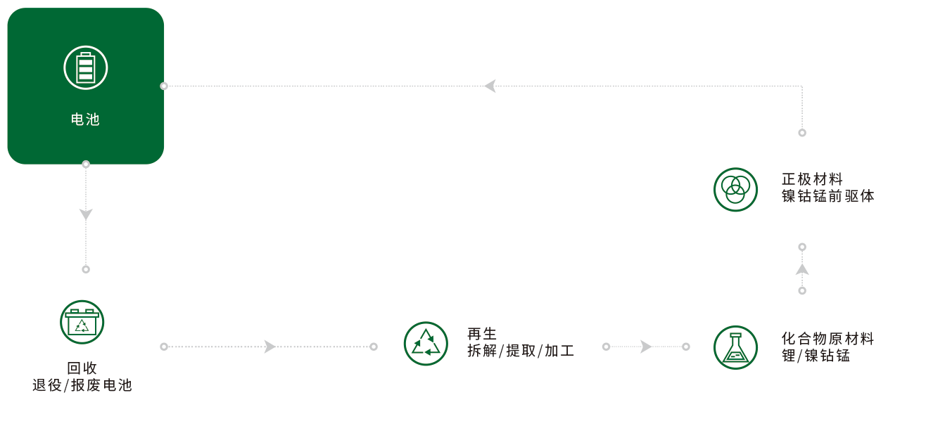 拥有二十余年行业经验及完整的锂生态布局,既能对电池中各种可回收金属进行高效提取,加工生产相应产品;又有完备的销售渠道积累,让各类资源在提取后均能通过相应渠道重新回归市场,完成资源的循环使用。