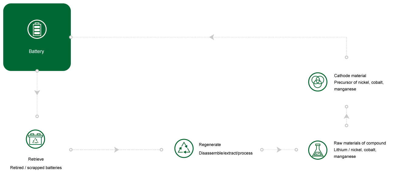 We have been in the Lithium industry for 12 years. We are not only able to effectively extract all kinds of recycled metal and process them, we also accumulate connections with sales to cycle resources back to the market. This established system of recycling allows maximum usage of resources.